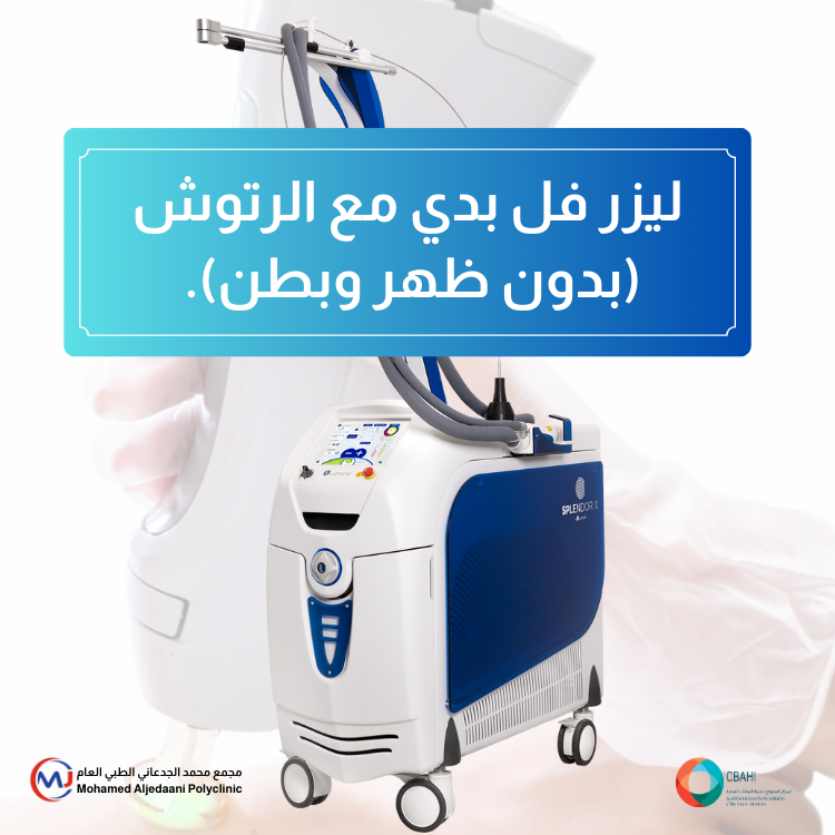 جلسة ليزر فل بدي مع الرتوش بدون مناطق الظهر والبطن، لإزالة الشعر من أغلب مناطق الجسم بكفاءة عالية. توفر نتائج ناعمة وطويلة الأمد مع جلسة رتوش لضمان أفضل تغطية وتقليل نمو الشعر مستقبلاً. خيار مثالي لمن تبحث عن راحة دائمة وبشرة أكثر نعومة.