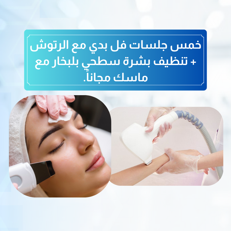 خمس جلسات فل بدي مع الرتوش + تنظيف بشرة سطحي بالبخار مع ماسك مجانًا