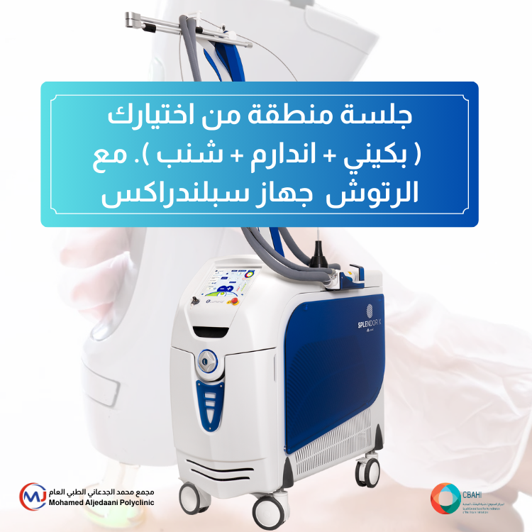 جلسة ليزر لمنطقة من اختيارك (بكيني، أندارم، أو شنب) مع الرتوش، لإزالة الشعر بدقة والحصول على بشرة ناعمة ومرتبة.